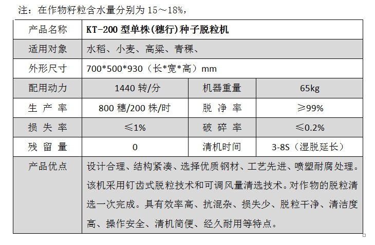 本機(jī)具有效率高、抗混雜、損失少、脫粒干凈、清潔度高、操作安全、清機(jī)簡便、經(jīng)久耐用等顯著特征。適用于從國家到地方的各級農(nóng)科單位、原種場和種子基地使用。